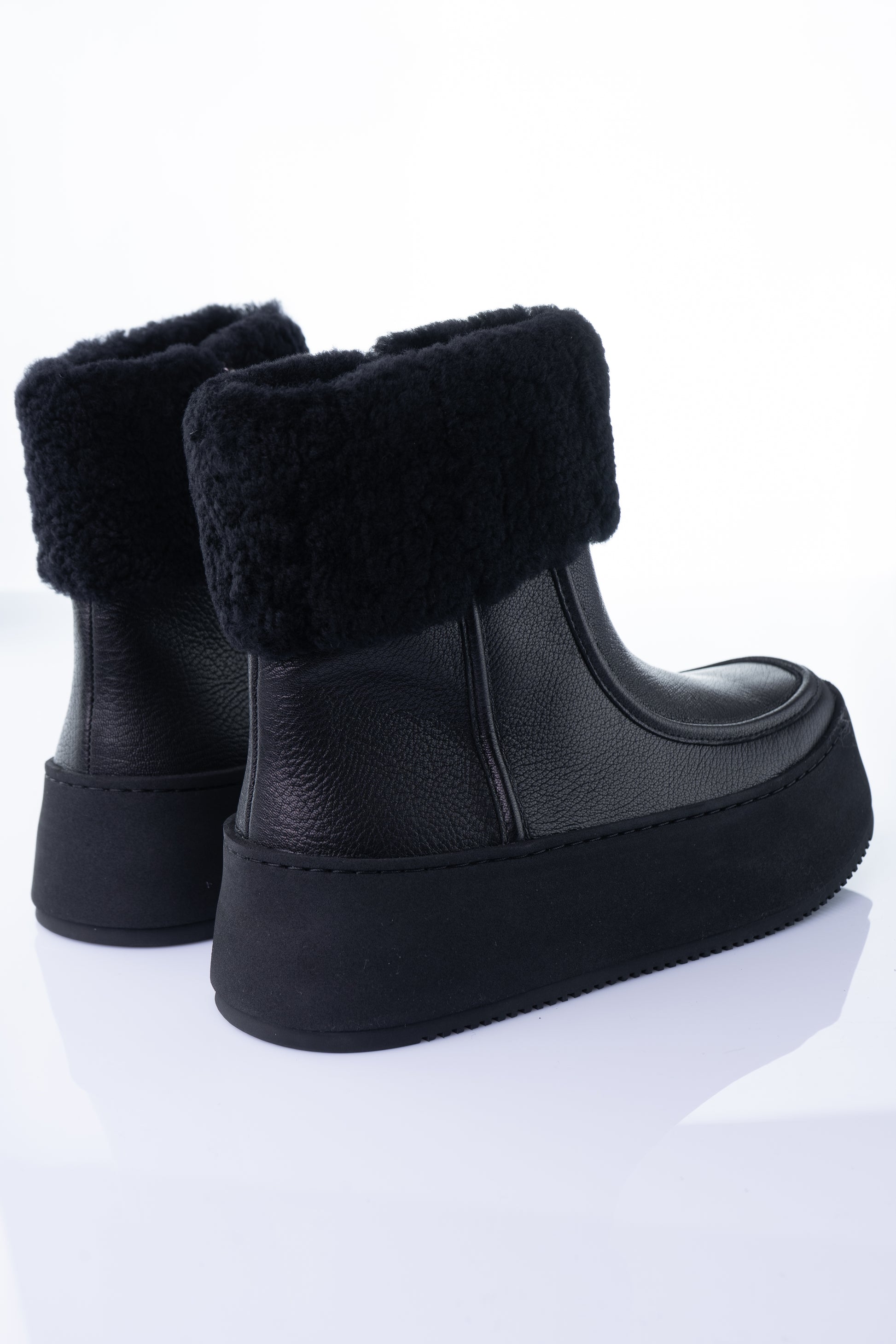 A bold black winter boot by Massimo featuring a thick platform sole, soft interior lining and a clean round-toe silhouette. Designed for warmth and everyday comfort with a modern, elevated look.