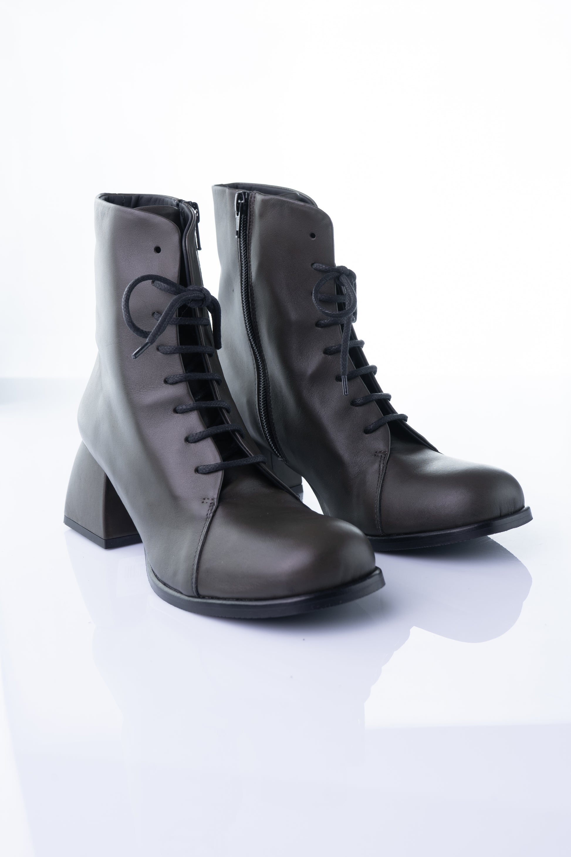 The Ducanero A.3125 is a refined black lace-up boot crafted from premium vitello leather. Its softened square toe, structured mid-height heel, and smooth minimal finish create a modern, sculptural silhouette. Designed for comfort and stability, the leather–rubber sole combination ensures durability and everyday practicality while maintaining a clean, elevated look.